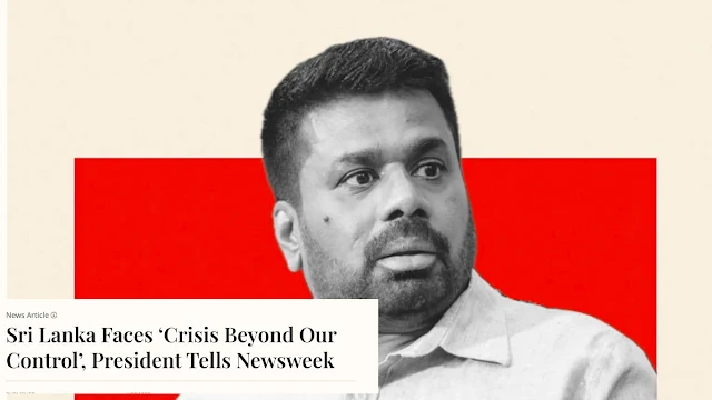 සුළි කුණාටුවෙන් විනාශ වී ඇති ශ්රී ලංකාව, ණය අර්බුදයෙන් සහ දේශපාලන කැළඹීම්වලින් යථා තත්ත්වයට පත්වීමට උත්සාහ කරමින් සිටියද, එම ව්යසනයෙන් ගොඩ ඒමට අරගල කරමින් සිටින බව ජනාධිපති අනුර කුමාර දිසානායක මහතා Newsweek වෙත ලබා දුන් සම්මුඛ සාකච්ඡාවකදී සඳහන් කර සිටියේය.